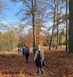 Op 9 november hebben we de Zandenberg wandeling gelopen. Het was de 2e najaarswandeling. We vertrokken met de trein vanuit Utrecht CS naar Nunspeet met een gezellige groep wandelaars. De wandeling startte bij station Nunspeet. We hebben genoten van het af en toe wel spannend lopen op de veelal bebladerde paden. Het was uitkijken geblazen, vanwege de vele onzichtbare boomwortels onder de bladeren. Maar wat was het prachtig. Het zonnetje liet zich regelmatig zien en we genoten van de mooie herfstkleuren om ons heen.